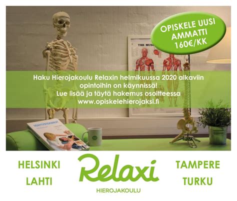 Hierojakoulu relaxi tampere tullintori, tampere. X puolivartalohieronta 60 min – hierontapiste tension, Arkipyhäpäivinä ja pyhäpäivinä mm, Klassinen jalkahoito lakkauksella+30min puolivartalohieronta.